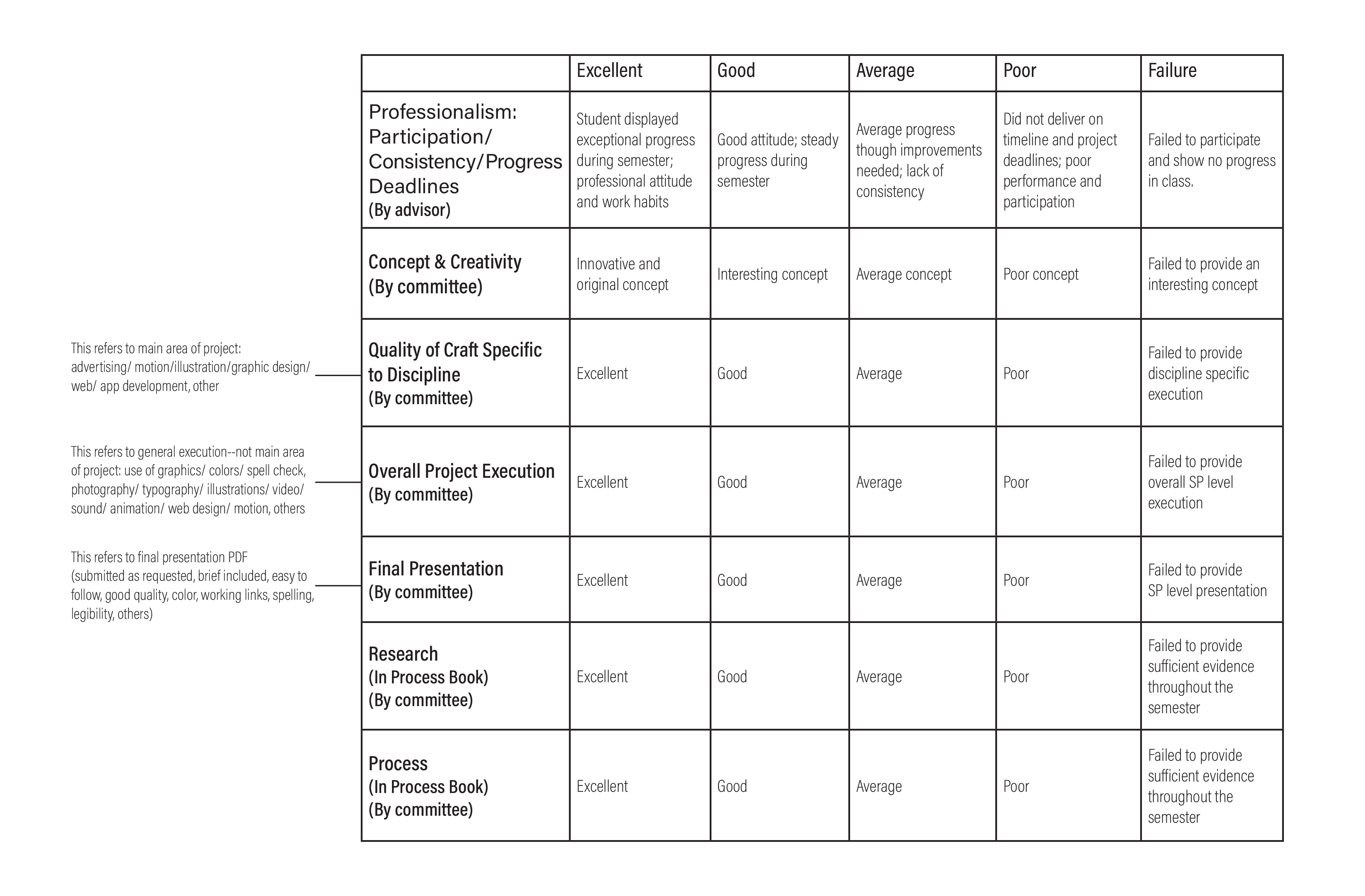 Students meet with an advisors weekly. Individual meetings will be scheduled, arranged and confirmed with the specific SP advisor. Each faculty advisor keeps attendance/notes regarding group and specific meetings.